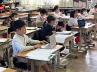今週から、上学年と下学年がペアになって、協力しながら体力テストに取り組んでいます。今日は運動場で、3・4年生が50m走と立ち幅跳び、ボール投げに挑戦していました。これらの結果も参考にしながら、継続して体力向上を図っていきます。