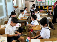 4年生は、算数科「大きな数」の学習をしています。「億」などの大きな数の単位について、真剣に話を聞いたり、積極的に発表したりしていました。まっすぐ伸びた手に、意欲を感じます。