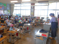 2年生が1年生を招待して「わくわくおもちゃランド」を開きました。午前中、体育館にたくさんのゲームコーナーが出来上がり、各コーナーでは1年生が2年生からゲームの仕方を教えてもらって楽しんでいました。